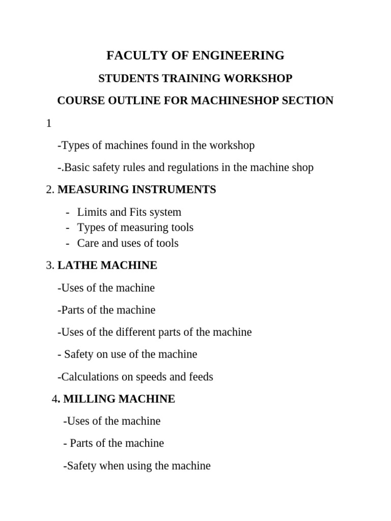 Machineshop Course Outline | PDF