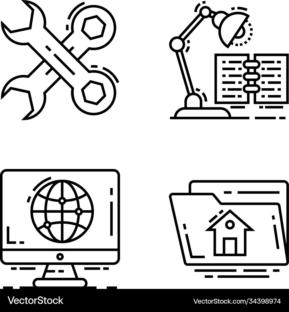 Technical support and engineering icon set in minimal line style ...