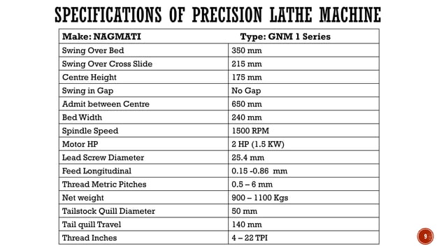 Lathe Machine Specifications Specification Unit Specification Unit ...