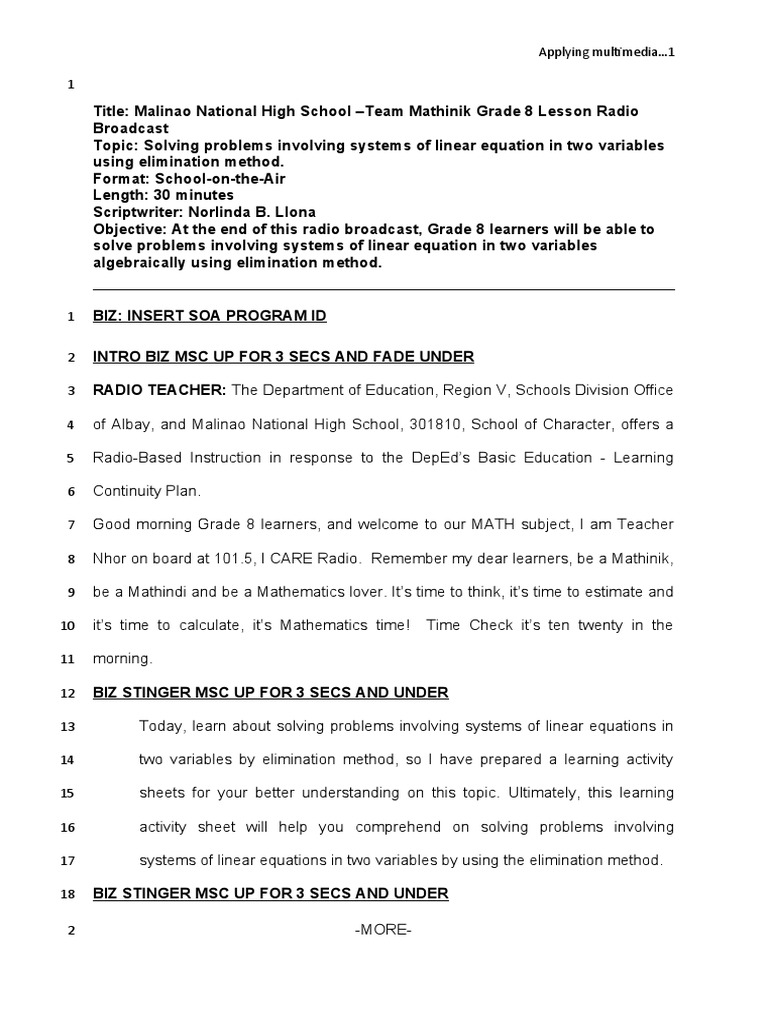 Explain the Elimination Method of Linear Equation in 2 Variables with ...