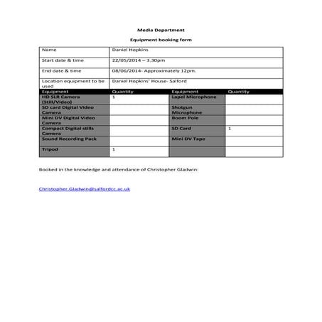 Equipment booking form | DOCX
