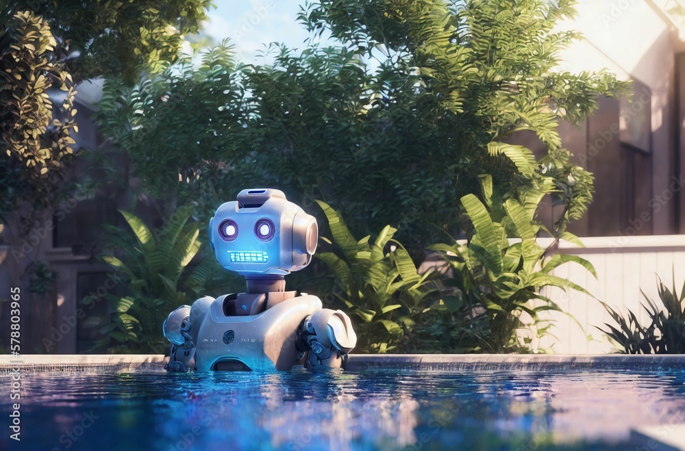 Premium AI Image | Mechanical waterproof robot in pool Modern ...