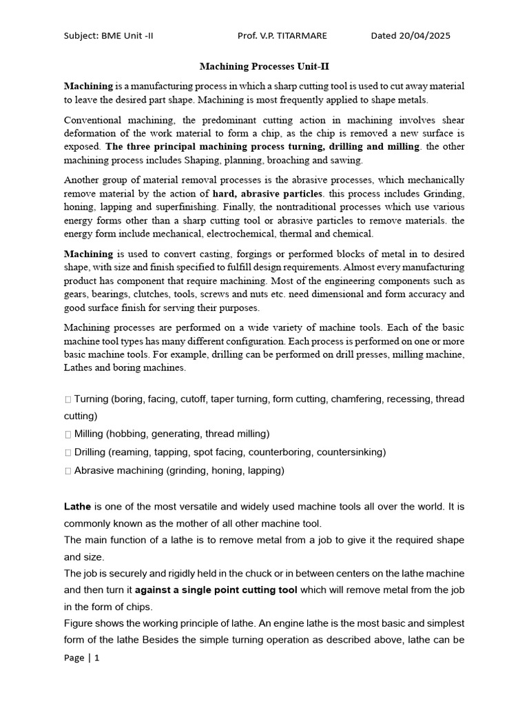 Lecture 1 introduction to machining | PDF | Woodworking | Arts and Crafts