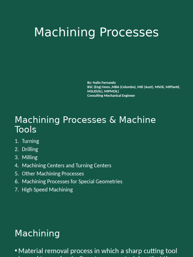Manufacturing Processes I - Machining Processes | PDF | Machining ...