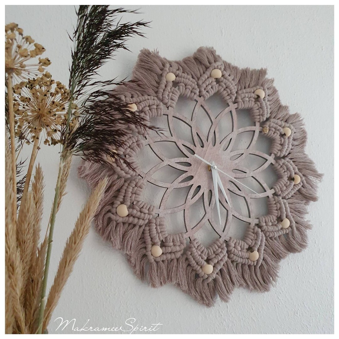 Macrame boho wall clock, beautiful carmel shake | Macramè
