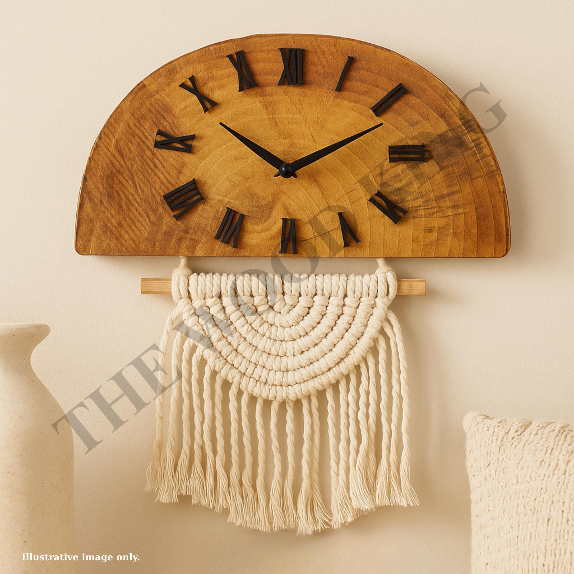 Handmade Wooden Wall Clock with Macrame Artwork | 12-Inch Elegant Deco ...