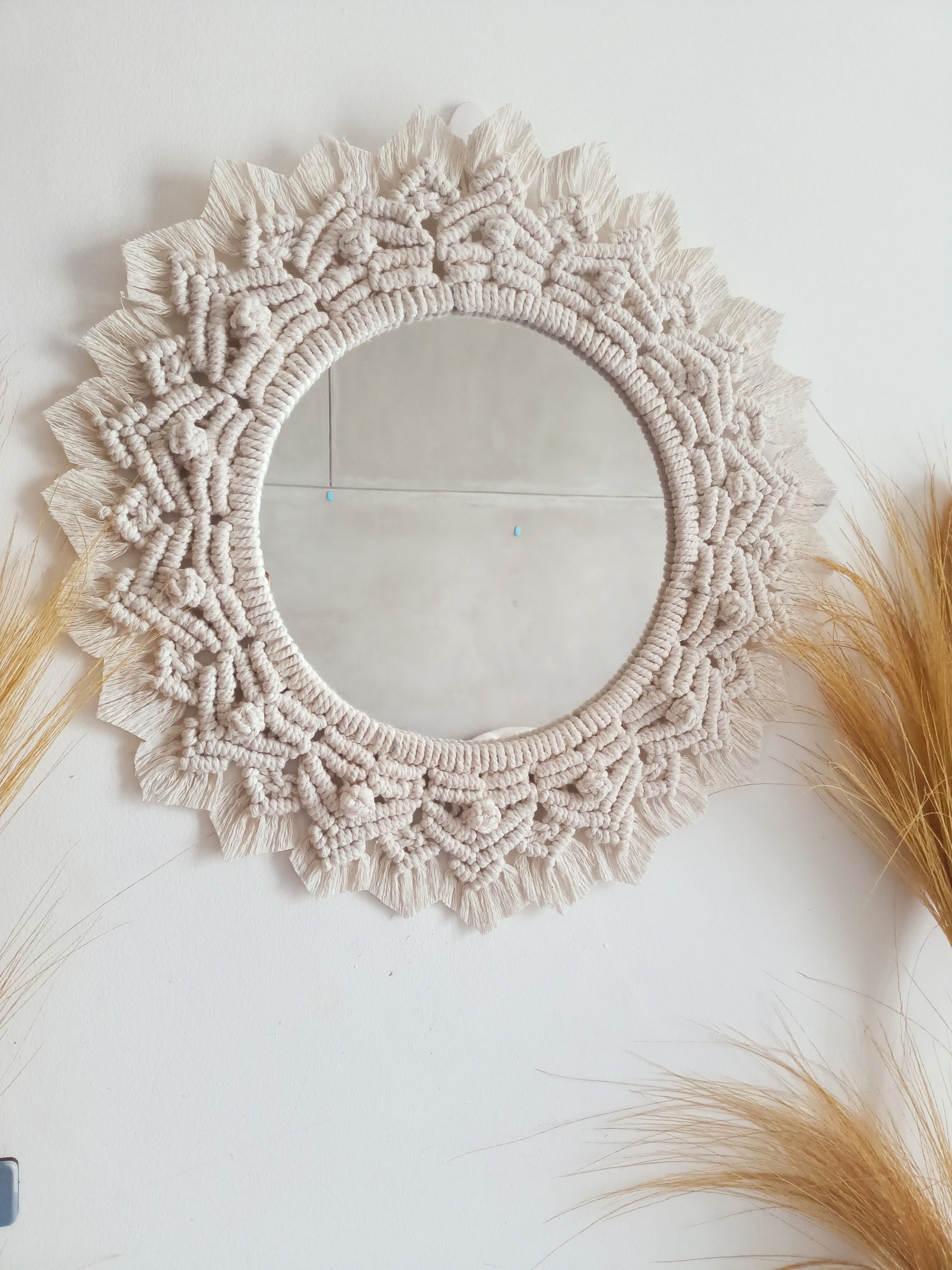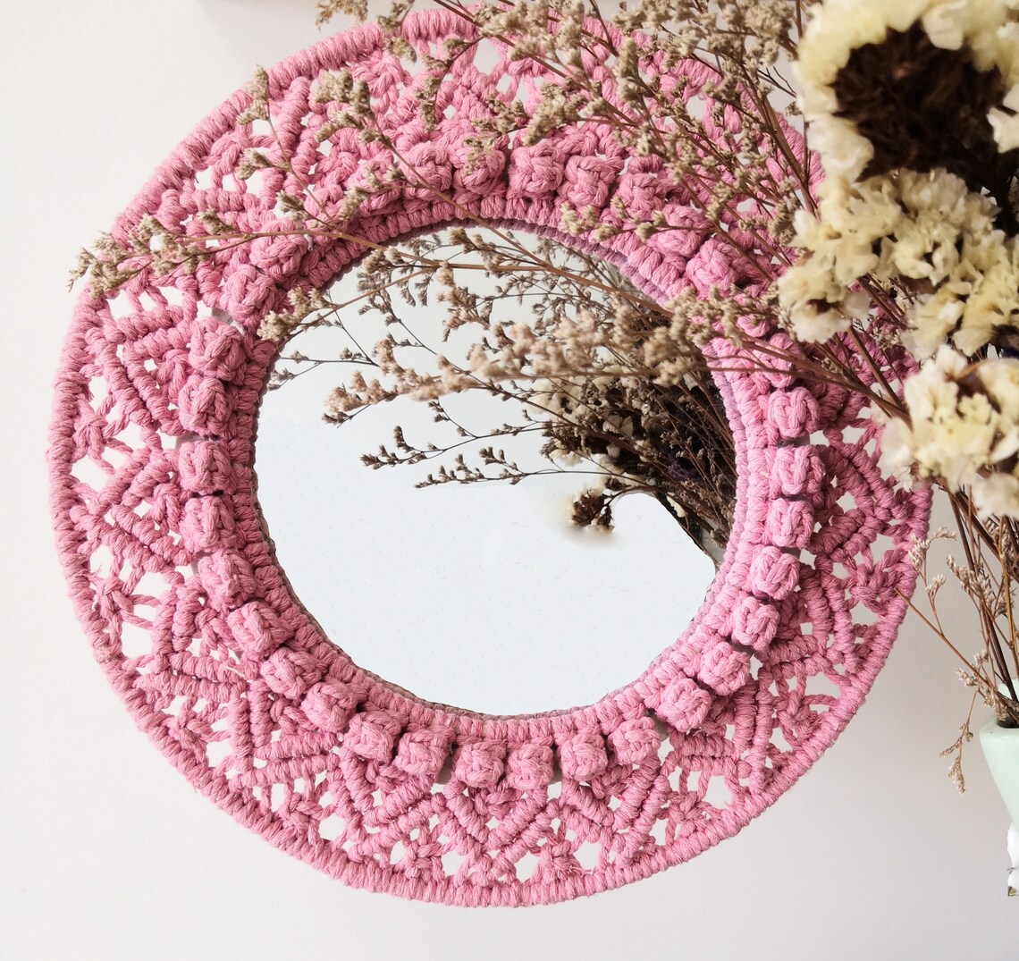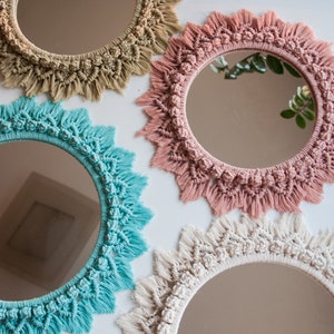Macrame Mirror Round Macrame Wreath Bohemian Mirror Wall | Etsy