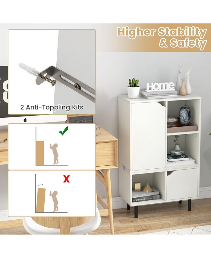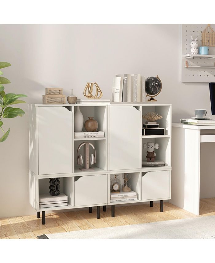 Slickblue Stackable Bookcase with Adjustable Shelf and Cubes-White - Macy's