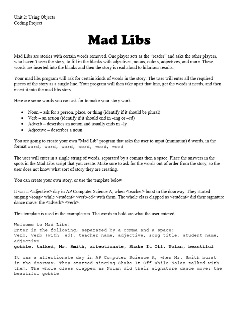 Mad Libs Program Book For Short-Term Internship | PDF | Class (Computer ...