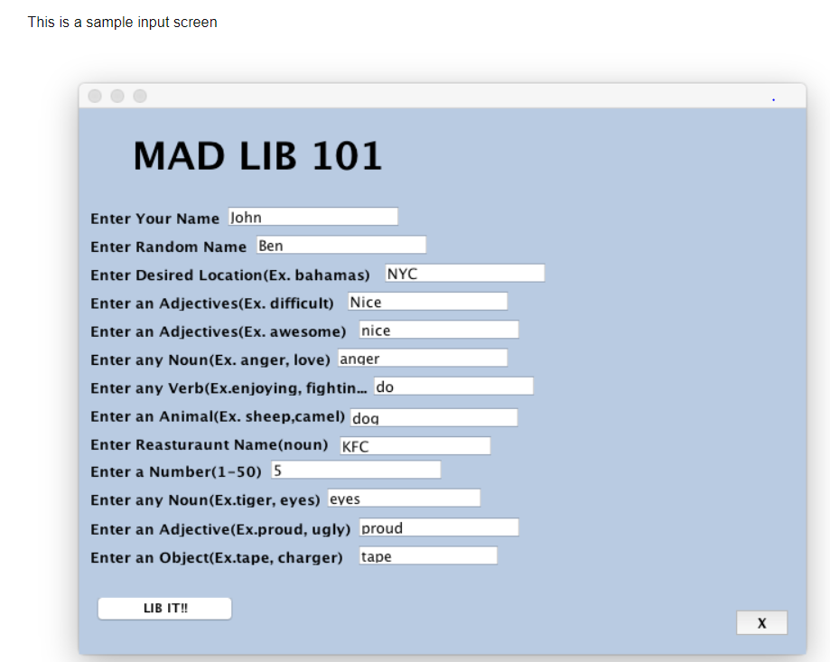 Solved Mad Lib Program: Write a program that plays the game | Chegg.com