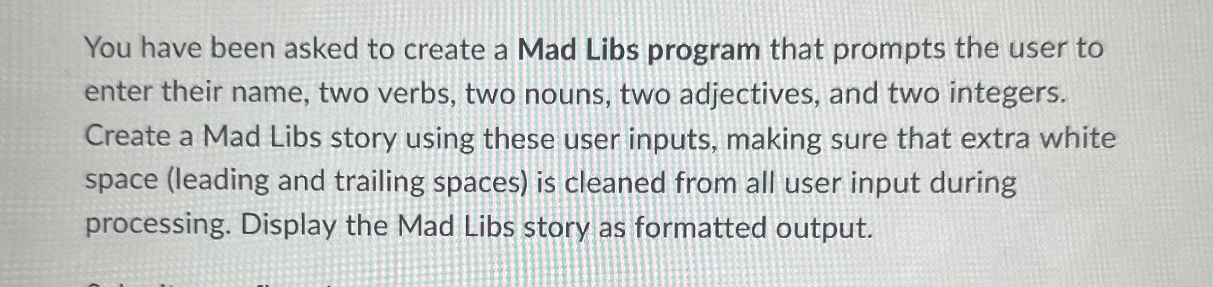 Solved You have been asked to create a Mad Libs program that | Chegg.com