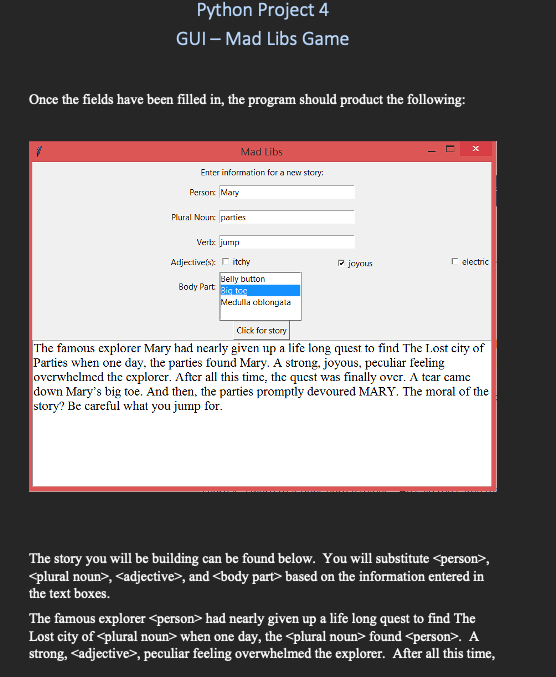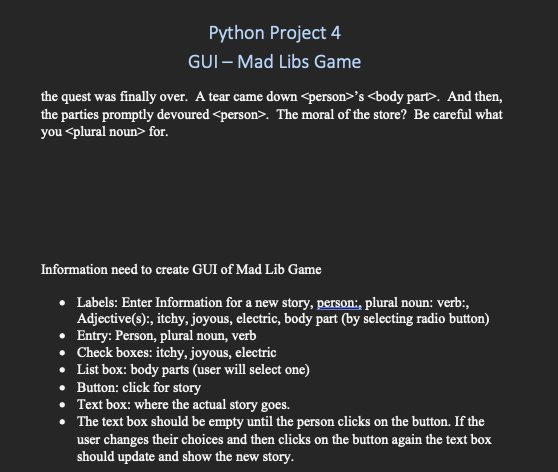 Solved Python Project 4 GUI – Mad Libs Game You will be | Chegg.com
