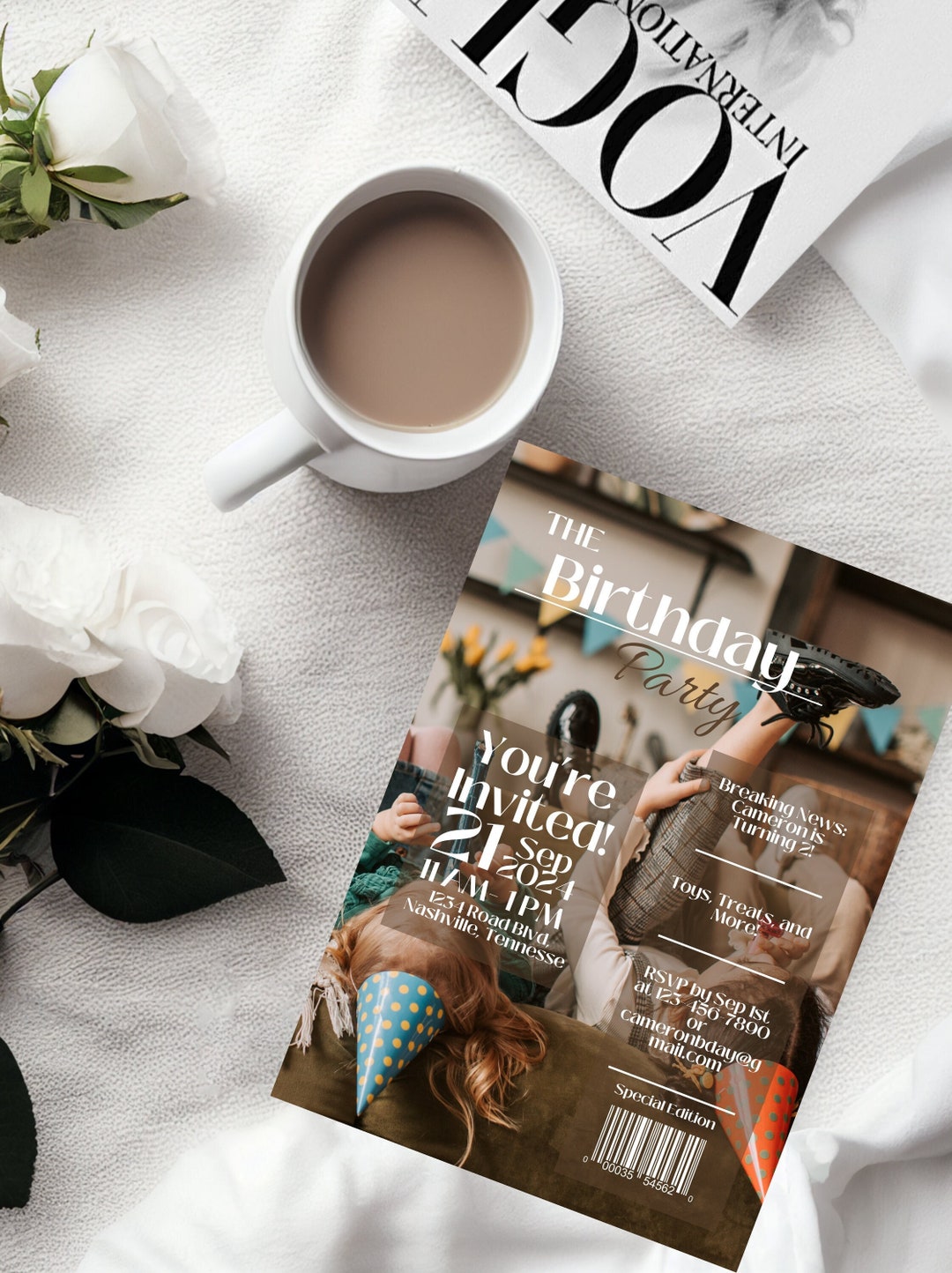 Magazine Style Cameron All Ages Birthday Party 5x7 CANVA Invite ...