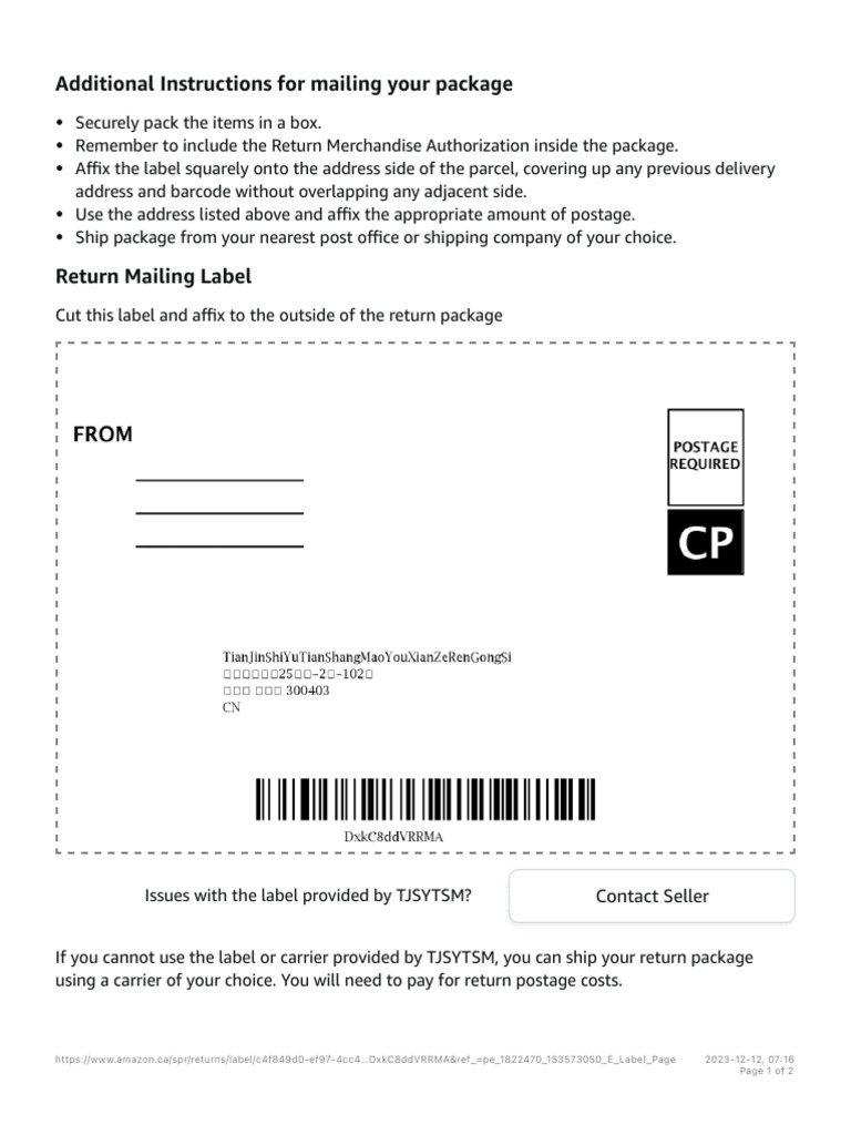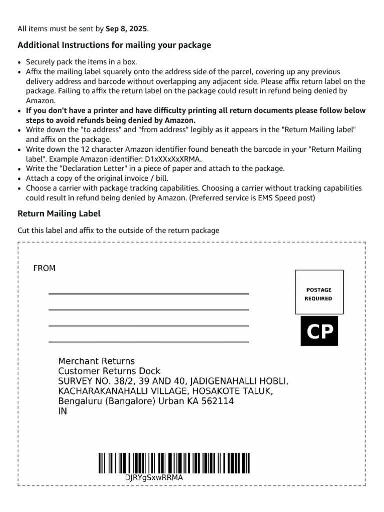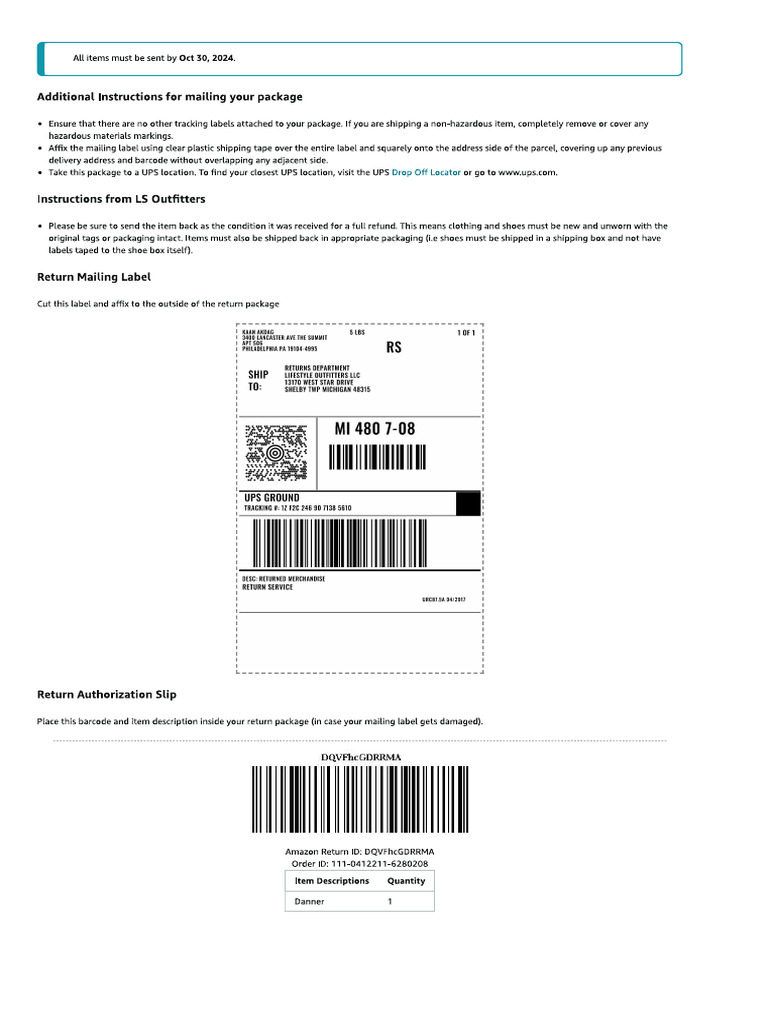 Amazon Returns/ Return Codes - Pack and Ship Plus