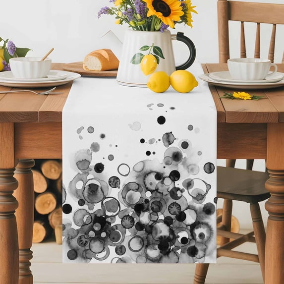 Burlap Table Runner 36 Inches Long, Black Gradient Polka Dot Non-Slip ...