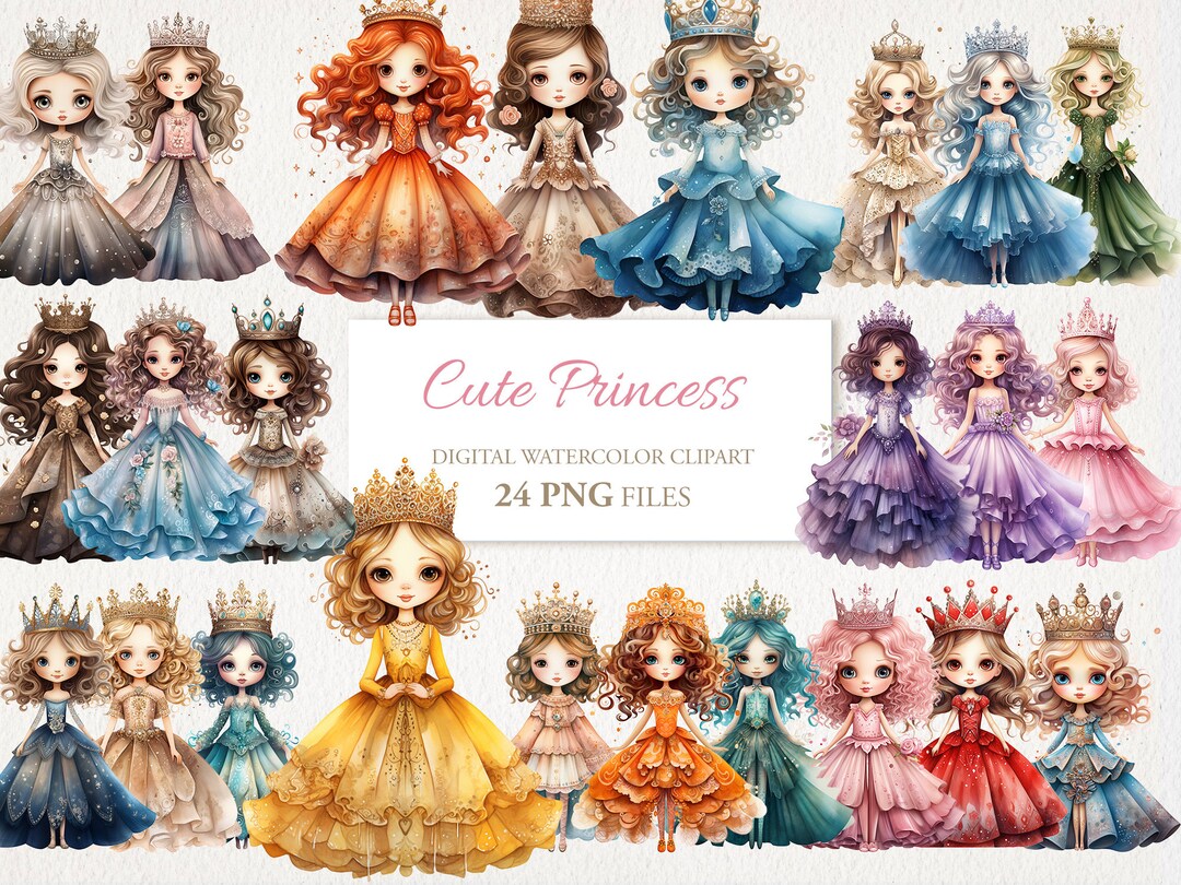 Magic Whimsical Princess Girls Dolls Cartoons Watercolor Clipart PNG ...
