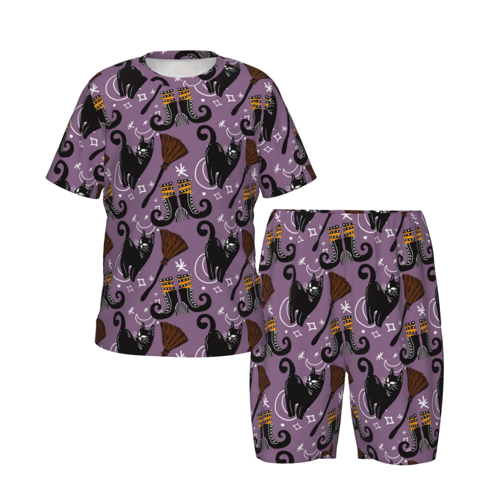 Pajamas for Women Set - Magic Style Cartoon Broom Cat Soft Comfy Long ...