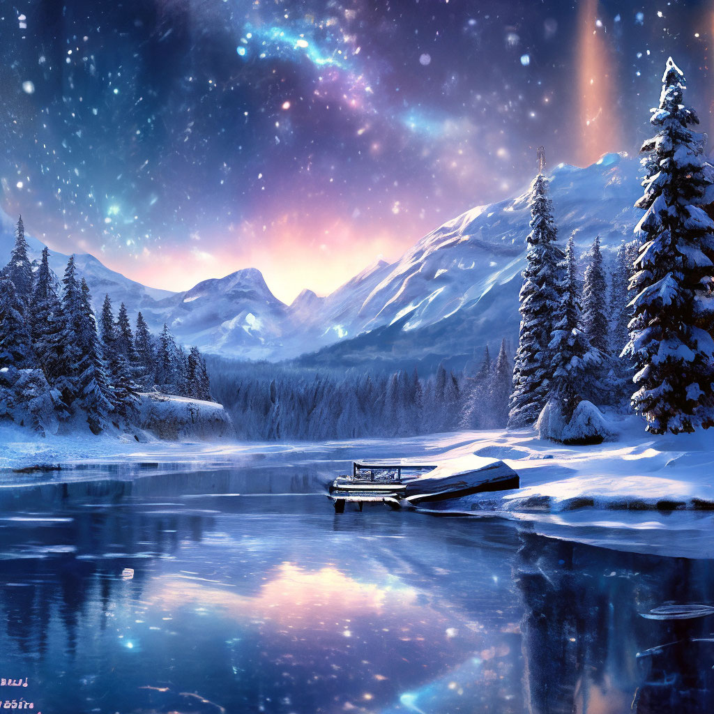 "Winter magic, subtle drawing, beautiful neuro landscape, lake ...