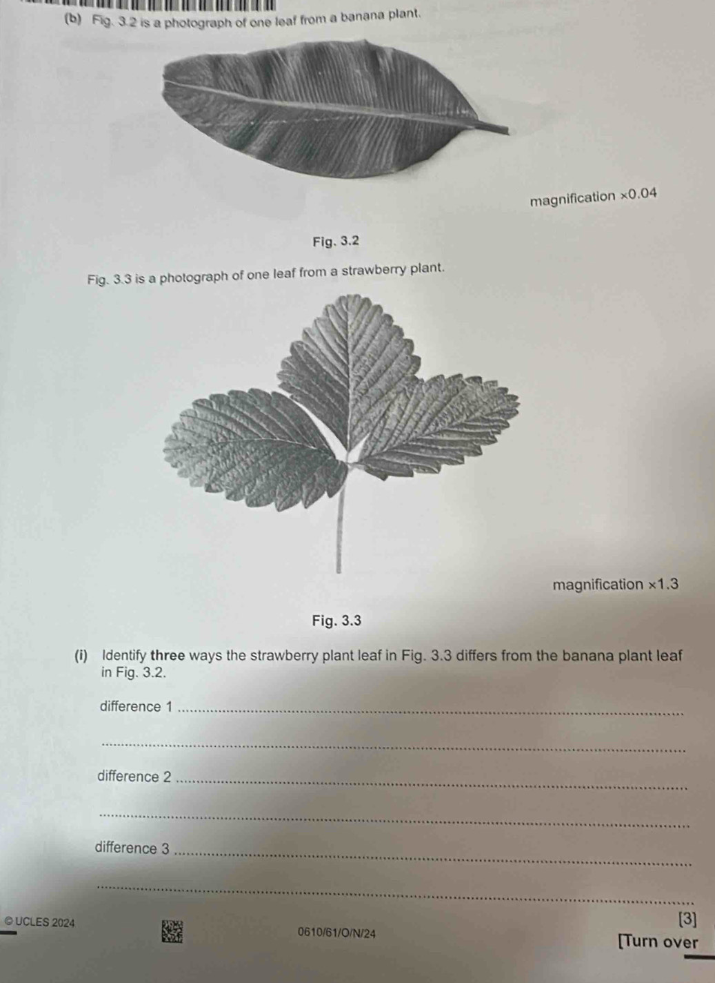 Solved: Fig. 3.2 is a photograph of one leaf from a banana plant ...