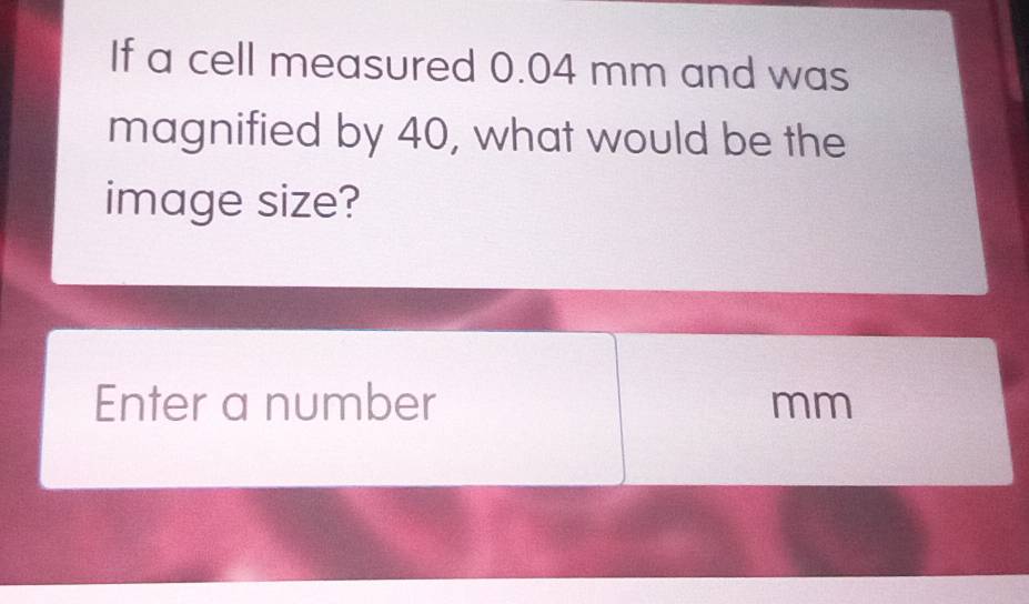 Solved: If a cell measured 0.04 mm and was magnified by 40, what would ...