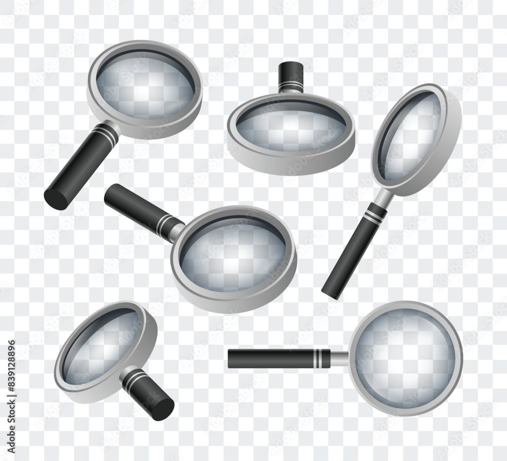 Set of vector realistic metal magnifier set collection isolated on ...