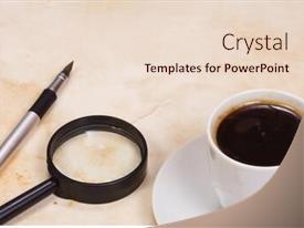 Magnifying Glass And Coffee PPT template 47 | CrystalGraphics