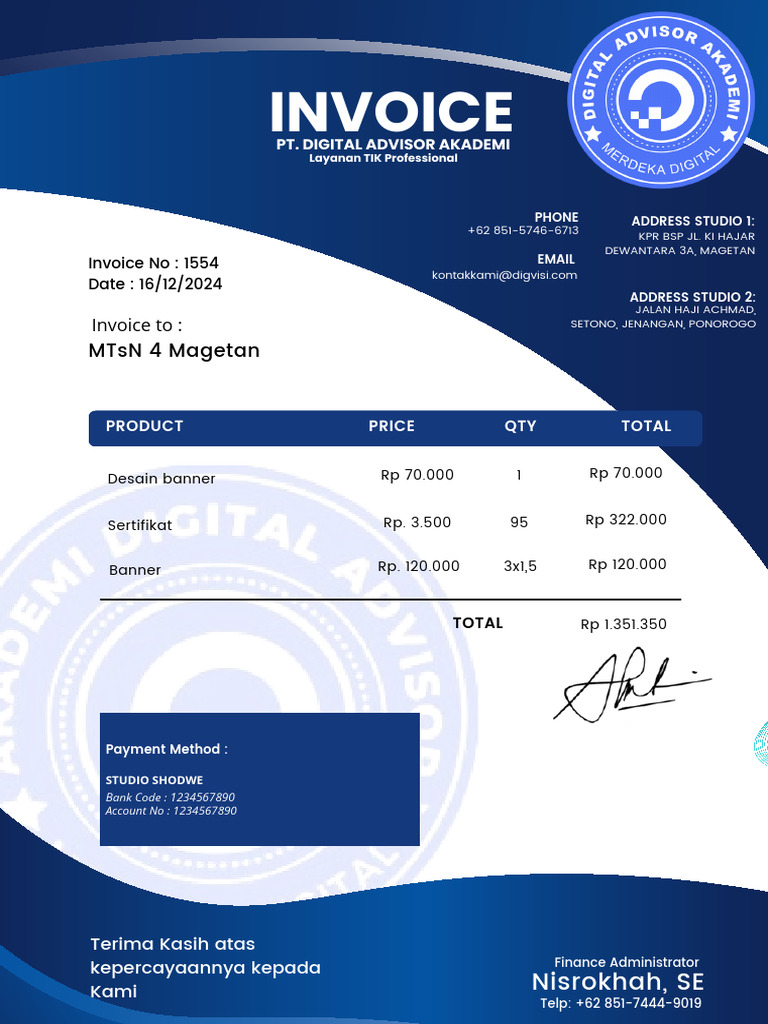Invoice for Design Services - PT. Digital Advisor | PDF