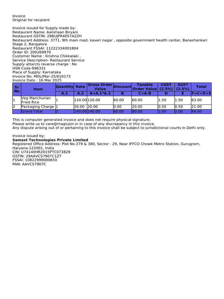 Magicpin Invoice | PDF