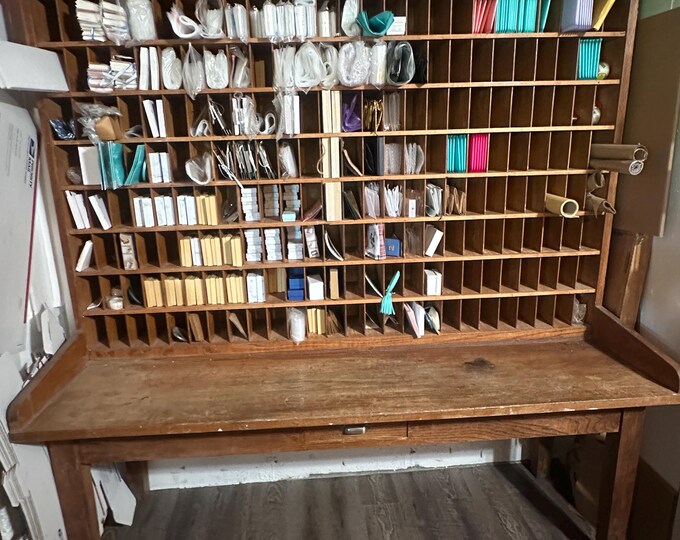 Vintage Oak MAIL SORTING STATION Table & Divided Cabinet LOCAL PICKUP ...