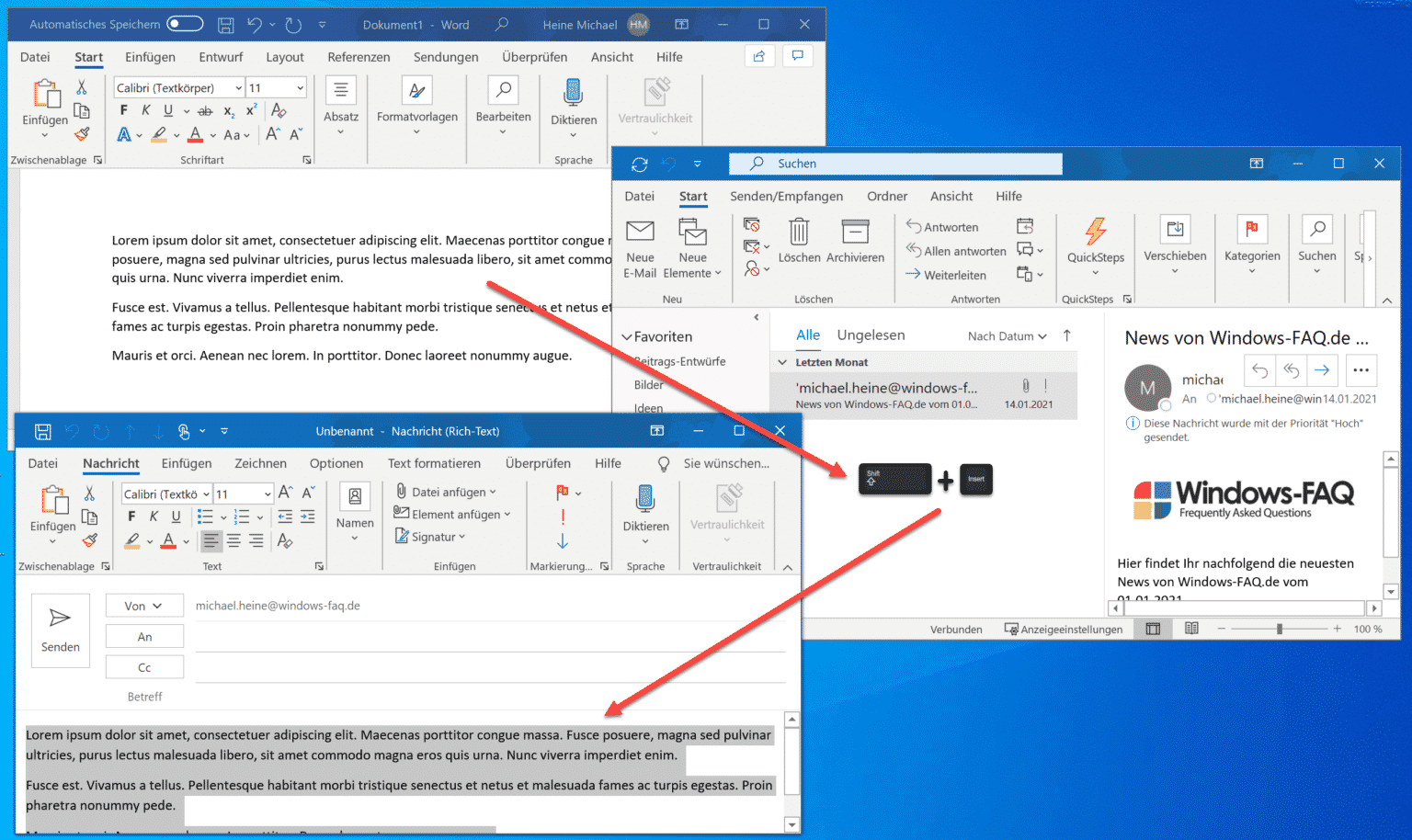 Text markieren und schnell in leere E-Mail kopieren mit Outlook ...