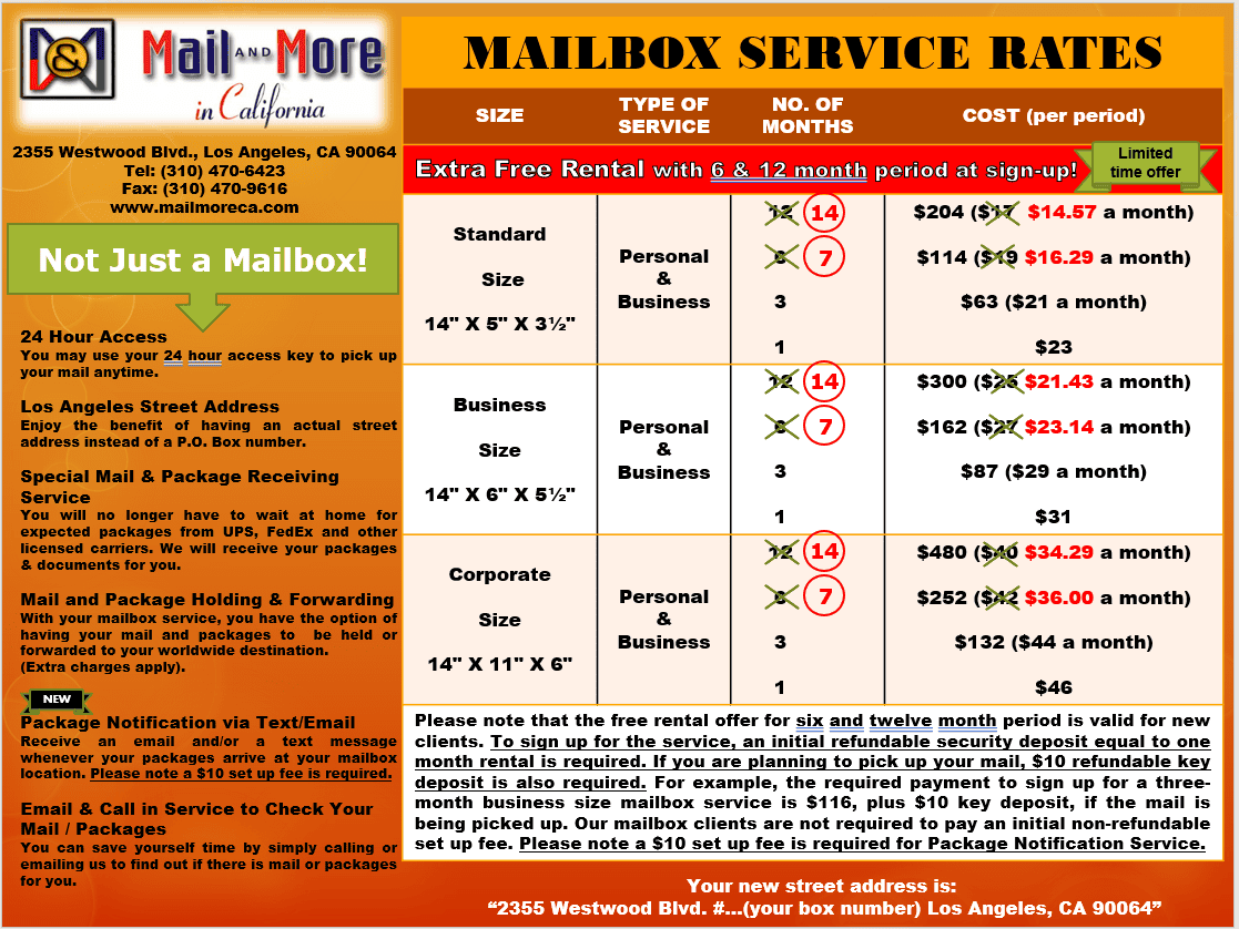 West LA Mailbox Rates: Forwarding, PO Box, Rental