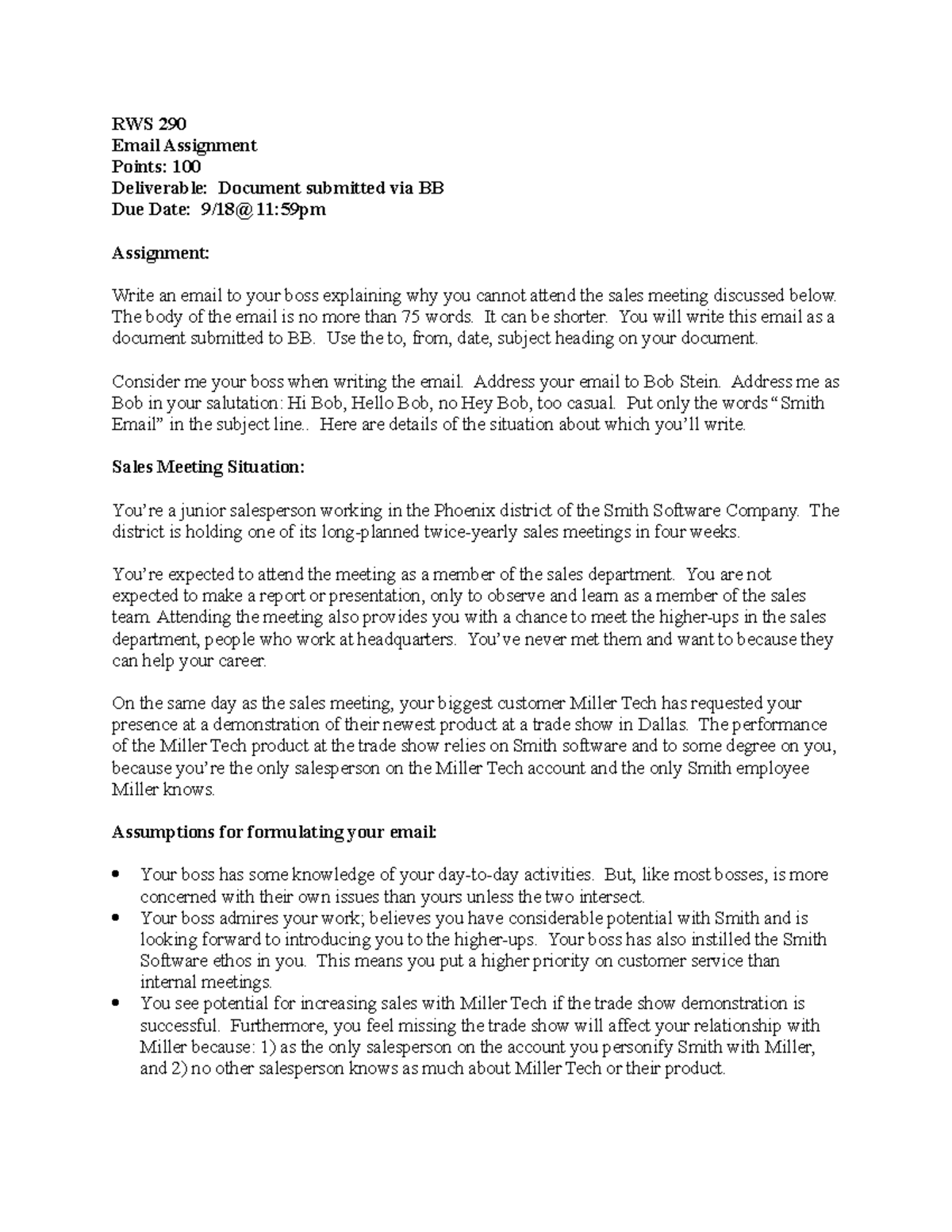 RWS 290 Email Assignment sdsu - RWS 290 Email Assignment Points: 100 ...