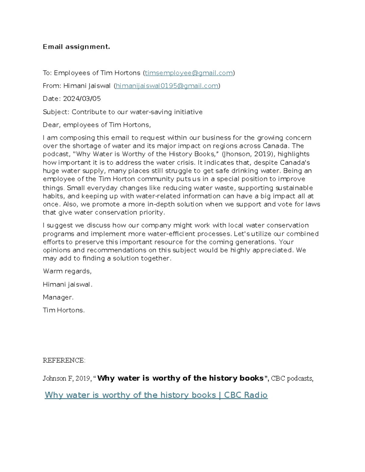 Email assignment Effective writing - Assignment #1-Email Instructions ...