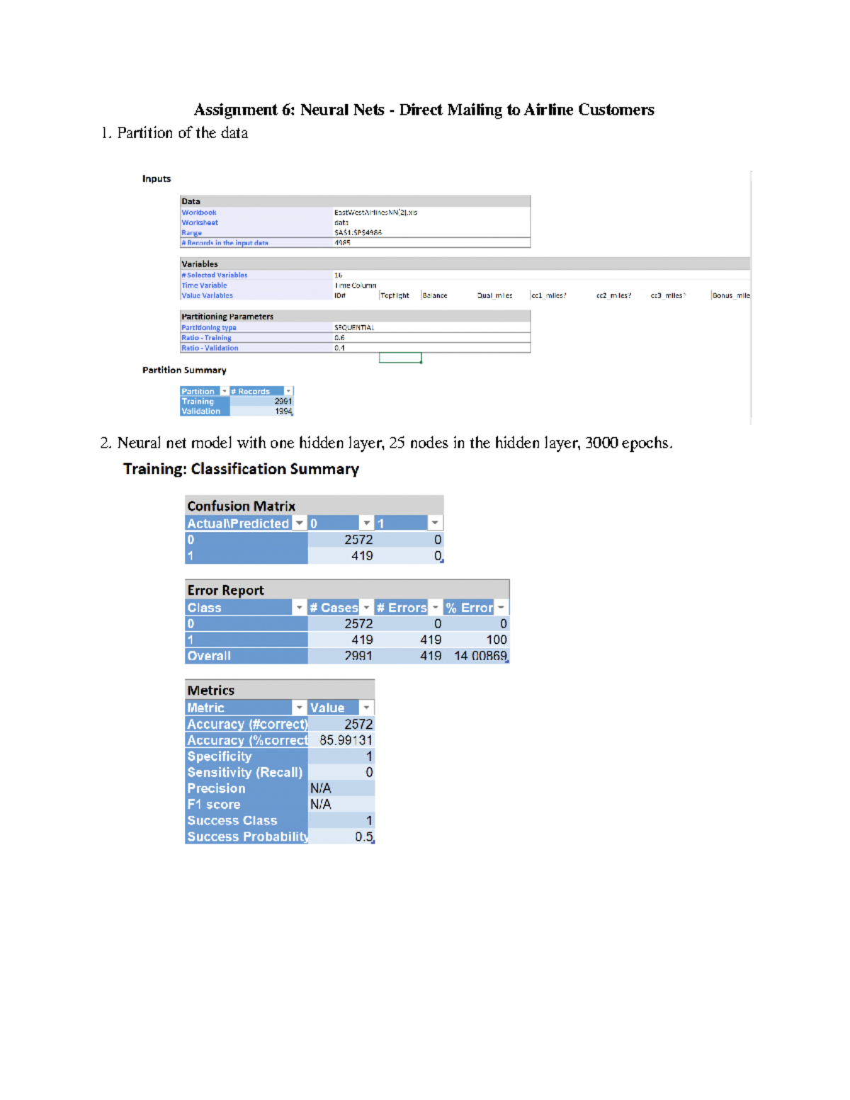 655 Data Mining HW 6 - Professor Bedeley Assignment 6: Neural Nets ...