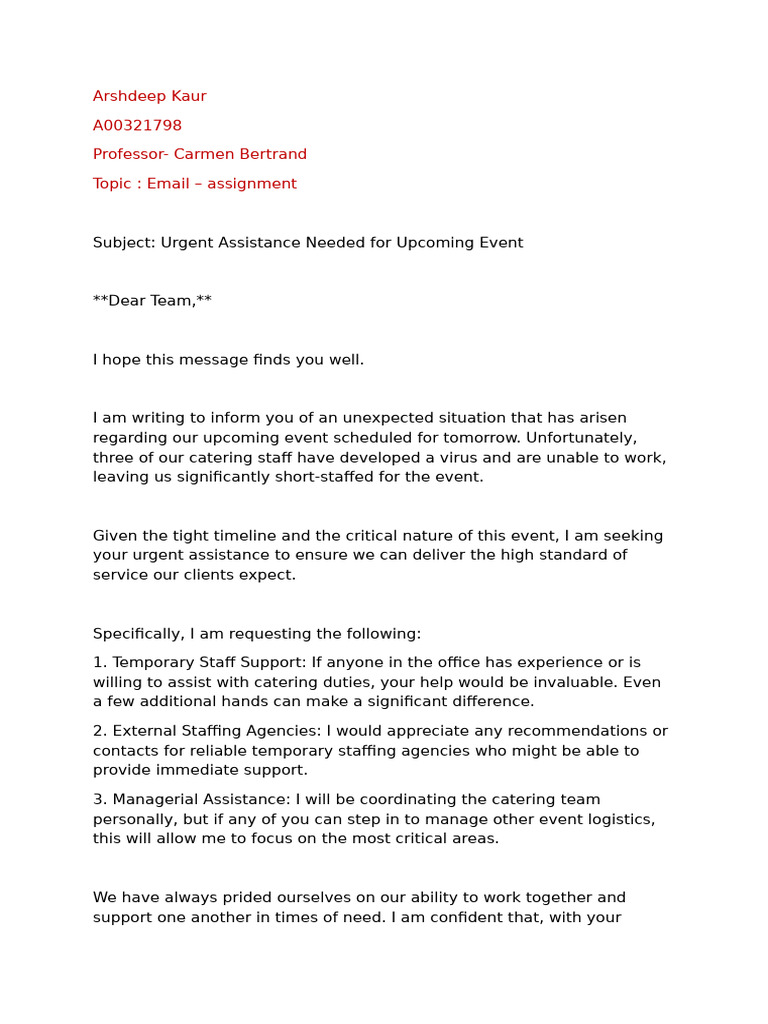 EMAIL ASSIGNMENT.docx - EMAIL ASSIGNMENT From: solavish sheridancollege ...
