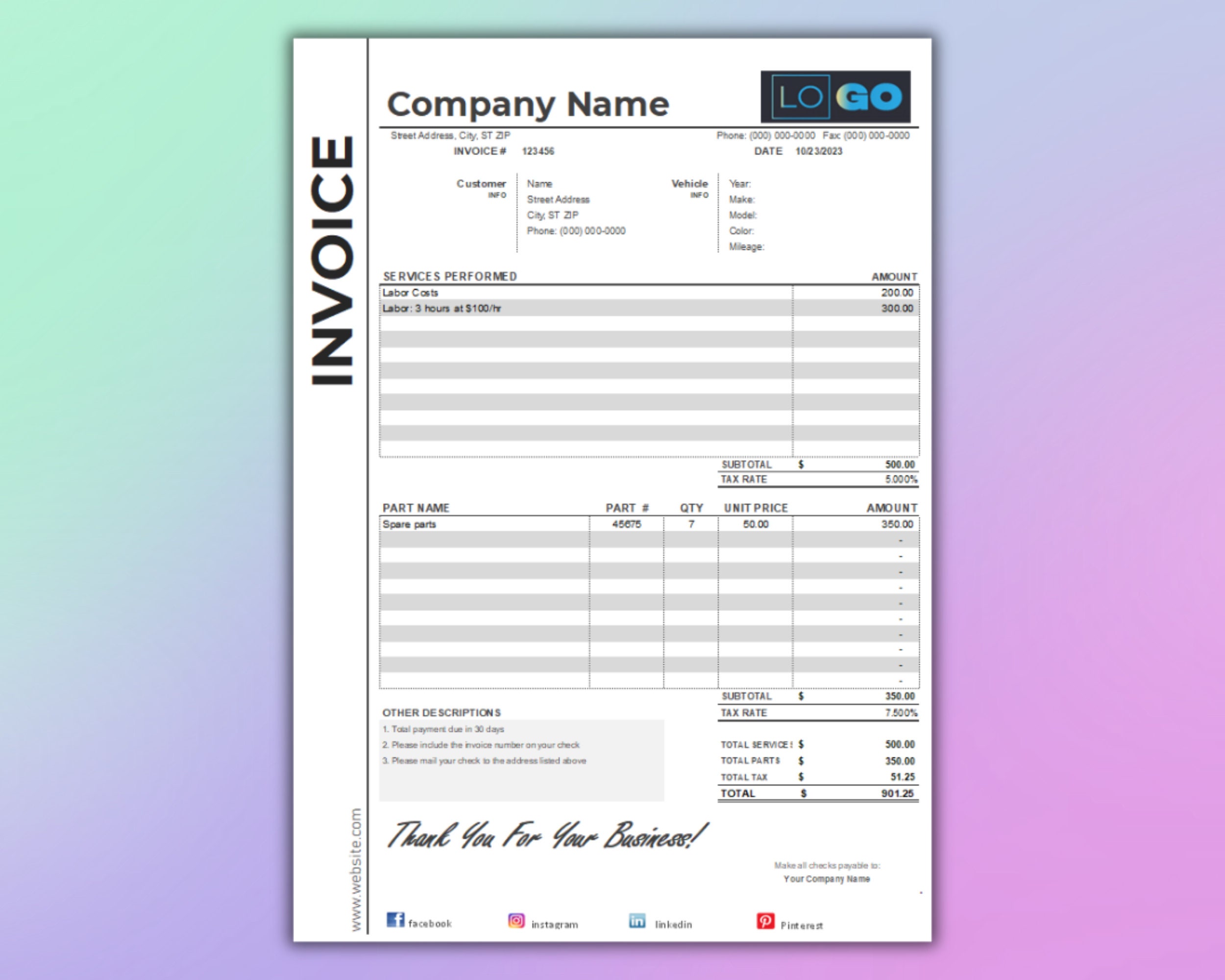 Auto repair invoice template sample – Artofit