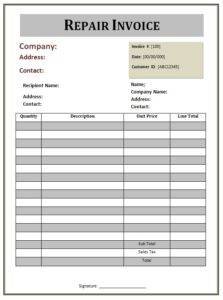 Free Repair Invoice Templates, Editable and Printable