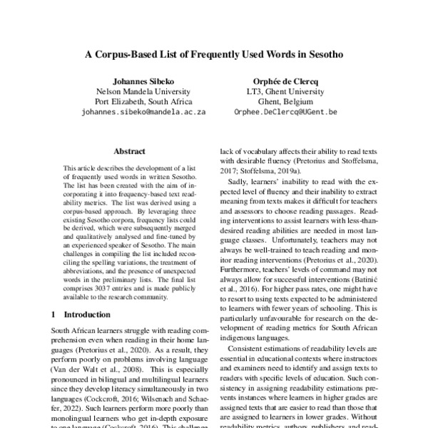 A Corpus-Based List of Frequently Used Words in Sesotho - ACL Anthology