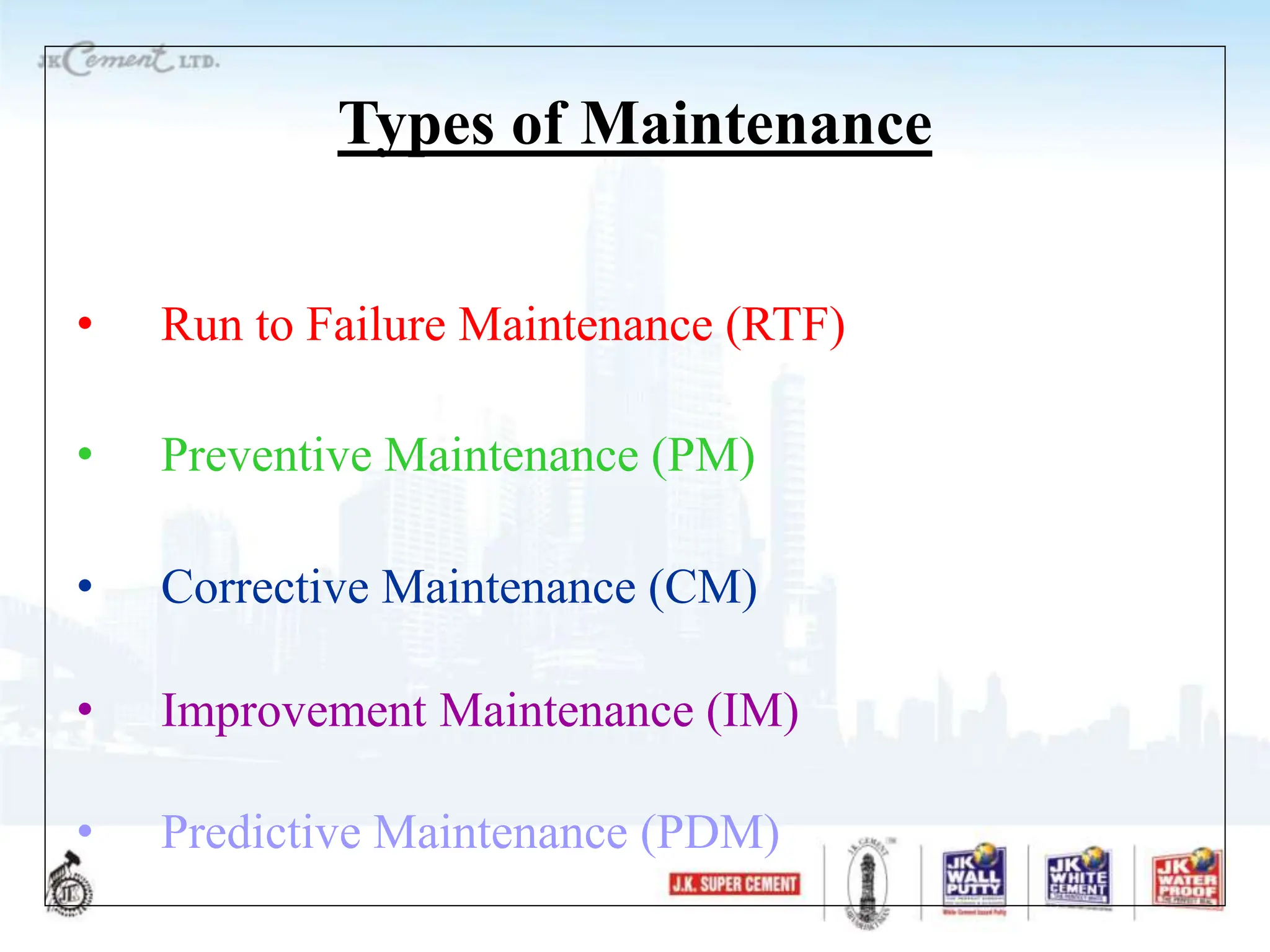 Types of Maintenance | Maintenance Types | Forms of Maintenance