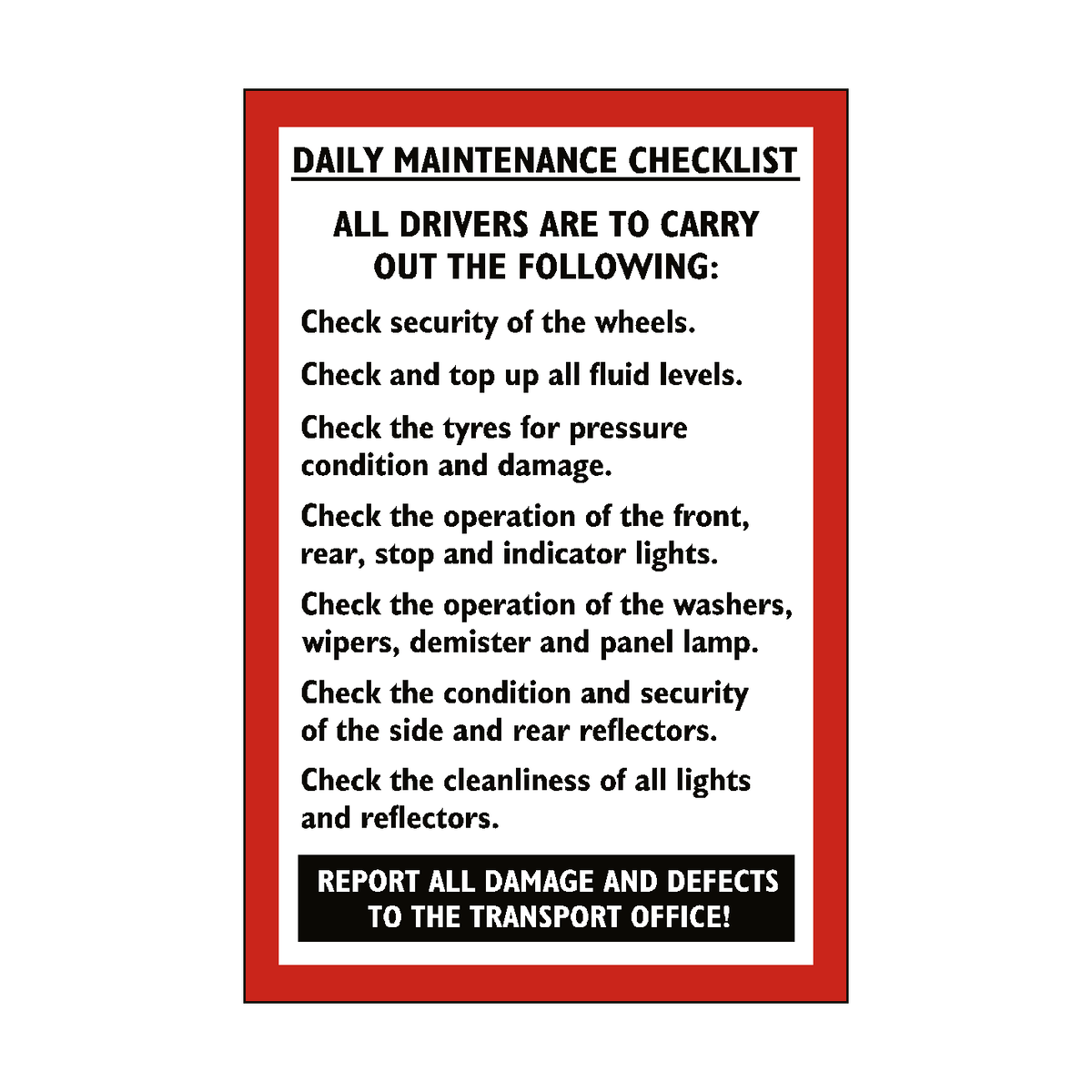 Daily Vehicle Maintenance Sticker | Safety-Label.co.uk