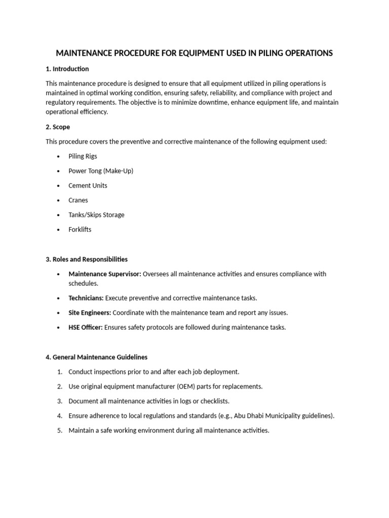 Piling Equipment Maintenance Procedures | PDF