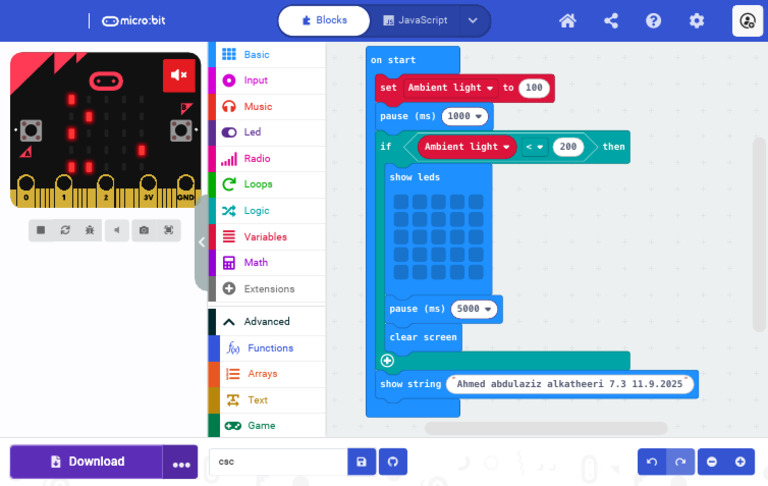 Practical project step 6 - Coding the Microbit - cazazz
