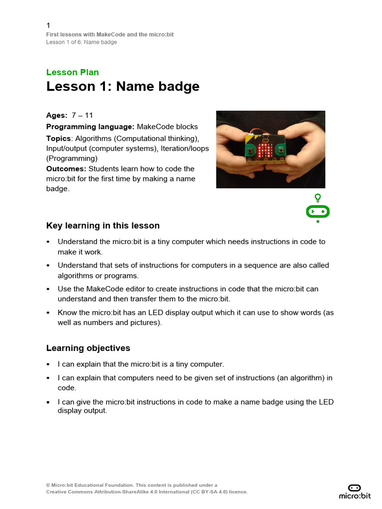 First Lessons With Make Code and The Micro Bit 1 Plan | PDF ...