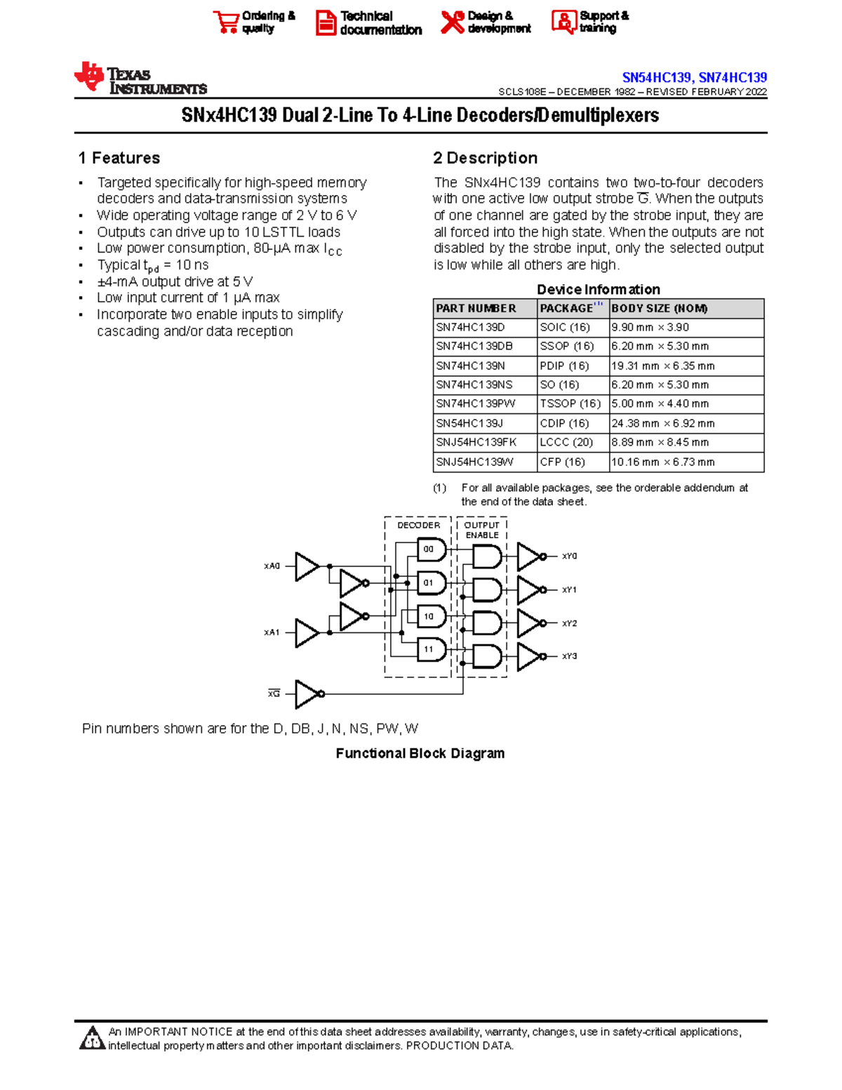 SN54HC139 & SN74HC139 Dual Decoder Data Sheet Overview - Studocu