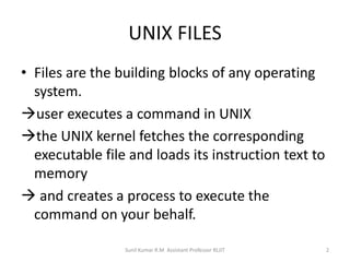 Features OF UNIX FILE - FEATURES OF UNIX FILE FILE: A UNIX file is a ...