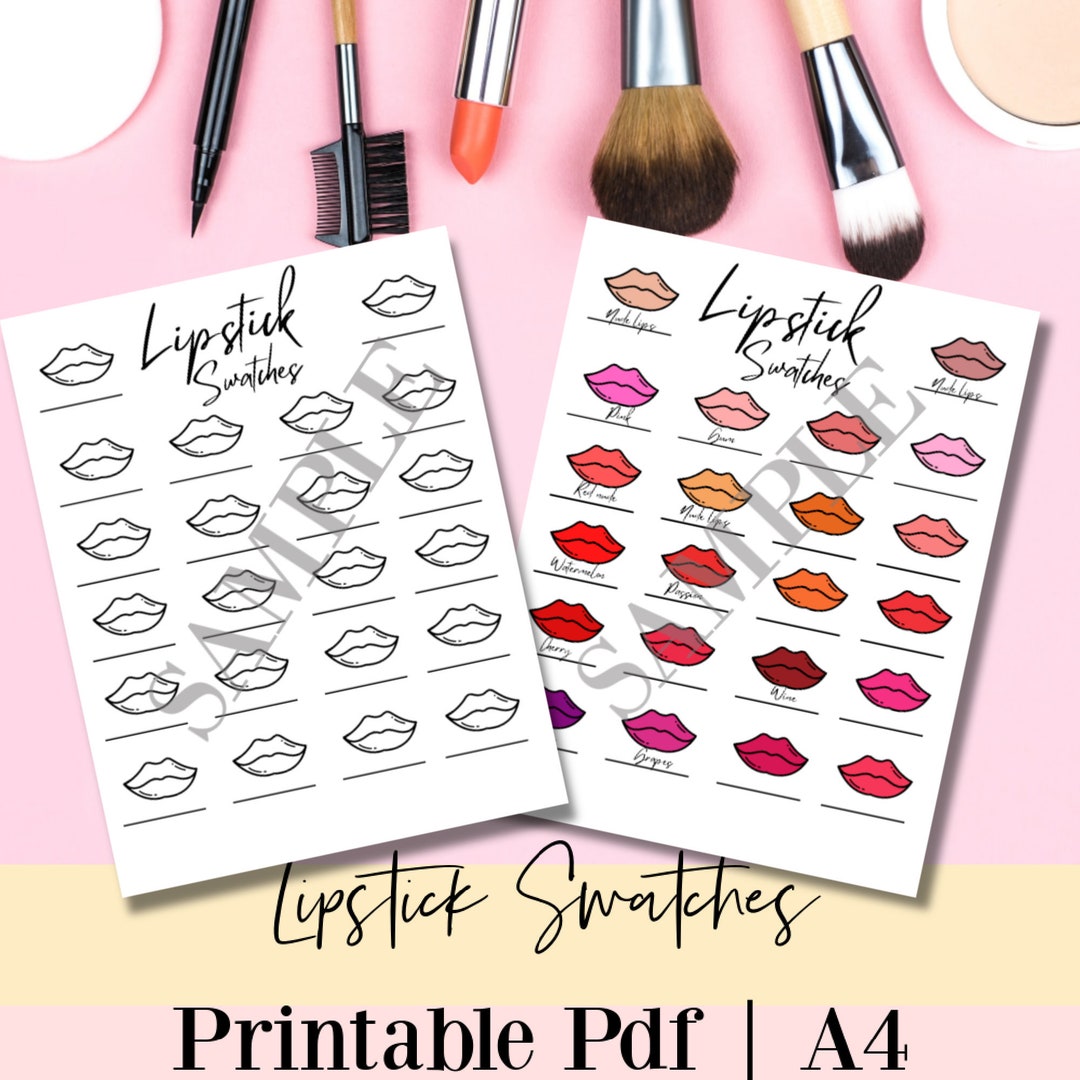 Lipstick Swatch Chart: Makeup Color Guide, A4 (printable Digital PDF ...