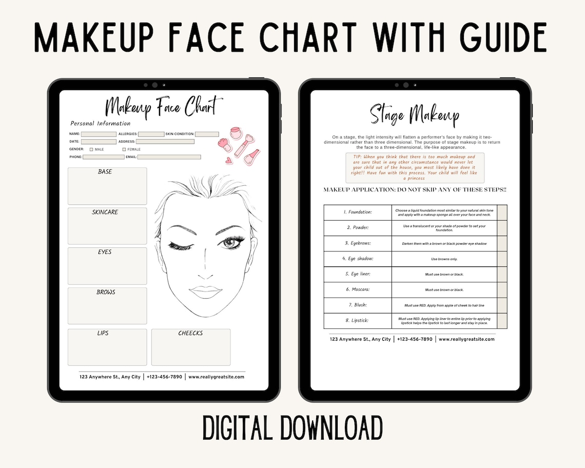 Makeup Face Chart Template: Practice Beauty Charts (PDF & PNG) - Etsy