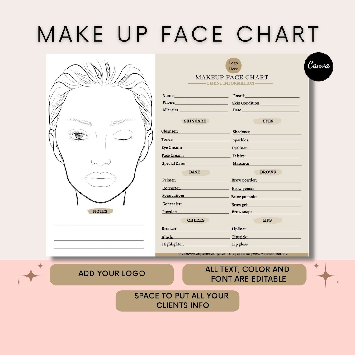 Editable Makeup Artist Face Chart Template (canva) - Etsy