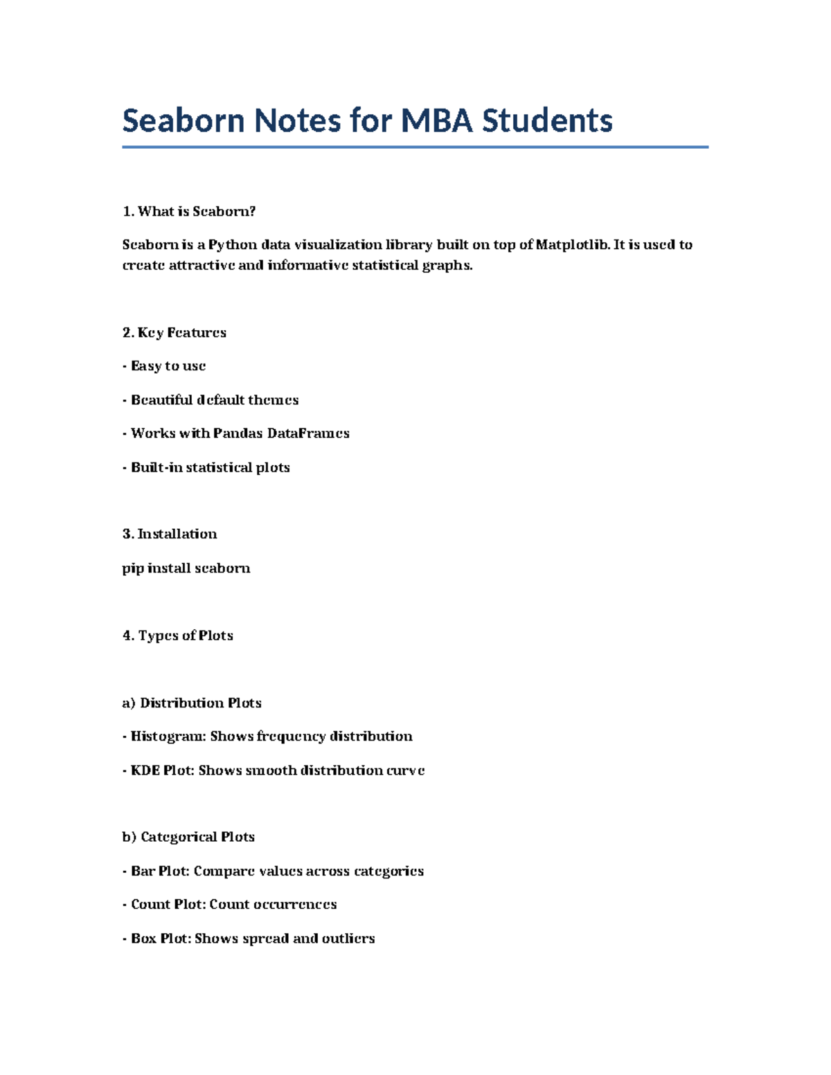 Seaborn Notes for MBA Students - BBA Course Insights - Studocu