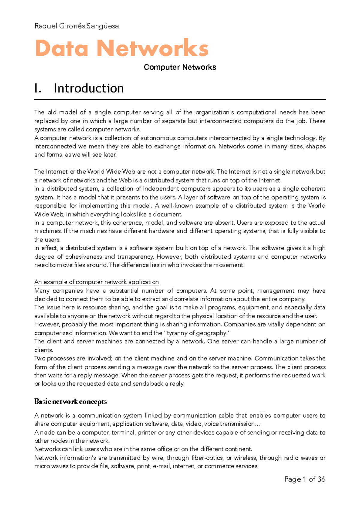 Data Networks - Data Networks Computer Networks I. Introduction The old ...